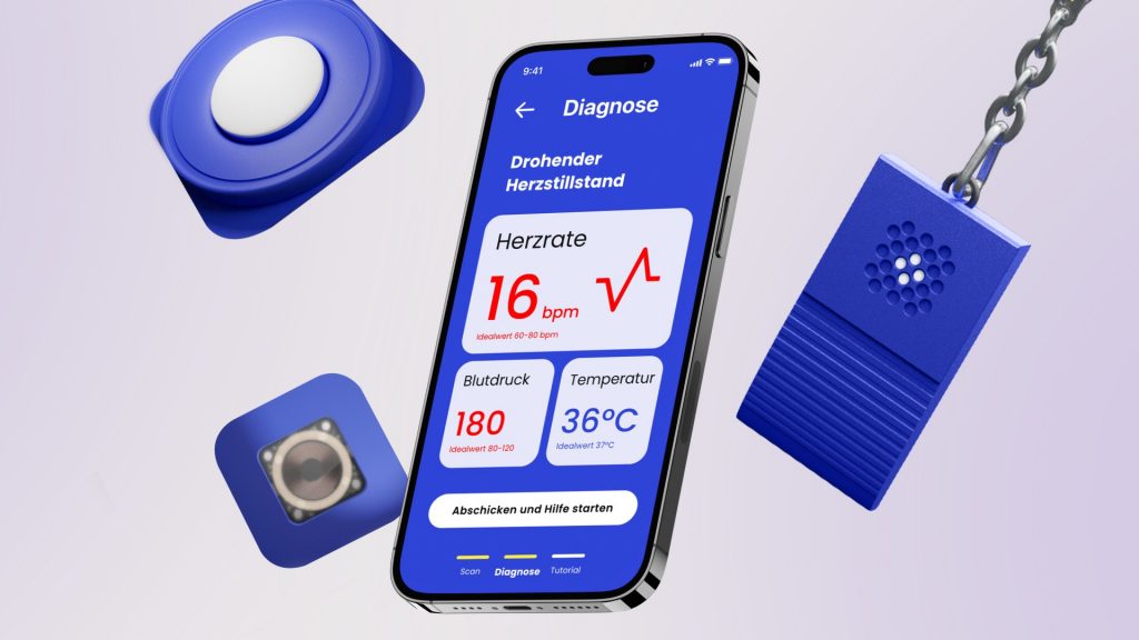 An app with an optional smart patch feature that supports users in first aid situations.