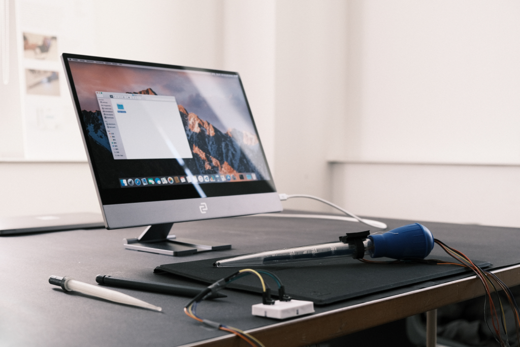 The concept has basic functionality, more user-friendly interaction, and the ability to temporarily store files. The refined design of the concept, like a ballpoint pen, offers a more professional and design-conscious experience with features and feedback enhanced through the press-to-save file mechanism.